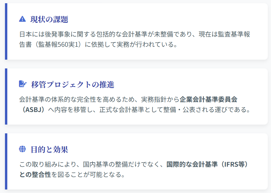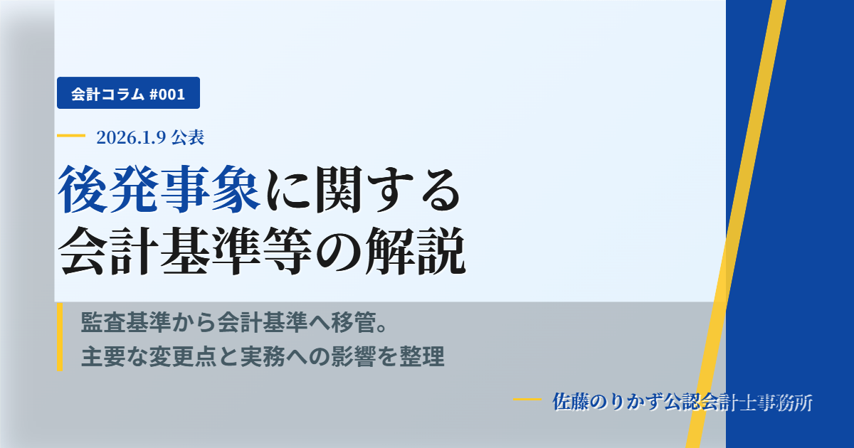 2026年1月9日、企業会計基準委員会(ASBJ)は、企業会計基準第 41号「後発事象に関する会計基準」等を公表しました。