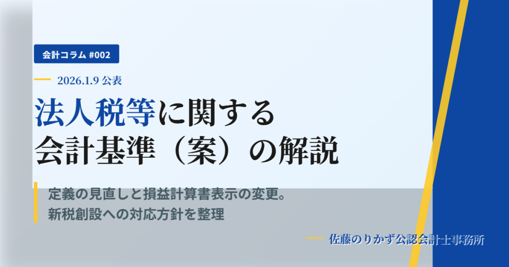 2026年1月9日、企業会計基準委員会(ASBJ)は、「法人税等に関する会計基準(案)」等を公表しました。