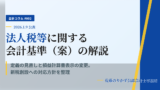 会計・税務TOPIC 2026.01.122026.01.20 日々の気づきや法改正、実務上の重要ポイントを綴っています。 経営者様や経理担当者様にとって有益な情報を発信してまいりますので、定期的にご確認ください。 【会計コラム#002】法人税等に関する会計基準(案)等の解説 2026年1月9日、企業会計基準委員会(ASBJ)は、「法人税等に関する会計基準(案)」等を公表しました。 企業会計基準公開草案第94号「法人税等に関する会計基準(案)」等の公表 今回の改正案は、防衛特別法人税のような新税の創設にも機動的に… 【会計コラム#001】後発事象に関する会計基準等の解説 2026年1月9日、企業会計基準委員会(ASBJ)は、企業会計基準第 41号「後発事象に関する会計基準」等を公表しました。 企業会計基準第41号「後発事象に関する会計基準」等の公表 これまで監査基準報告書という監査上の指針に委ねられていたル… お問い合わせ 各種ご相談は、下記フォームよりお気軽にお問い合わせいただけます。 ※以下のサービスについては、個別ページに専用のお問い合わせフォームを ご準備しておりますので、そちらからお問い合わせいただければ幸いです。 会計個別コンサルティング 執筆/研修講師/取材等のご依頼 【お問い合わせフォーム】 このフォームに入力するには、ブラウザーで JavaScript を有効にしてください。このフォームに入力するには、ブラウザーで JavaScript を有効にしてください。 メールアドレス お名前 お問い合わせ概要 お名前 *メールアドレス *メールアドレスメールアドレスを確認お問い合わせ概要 *送信